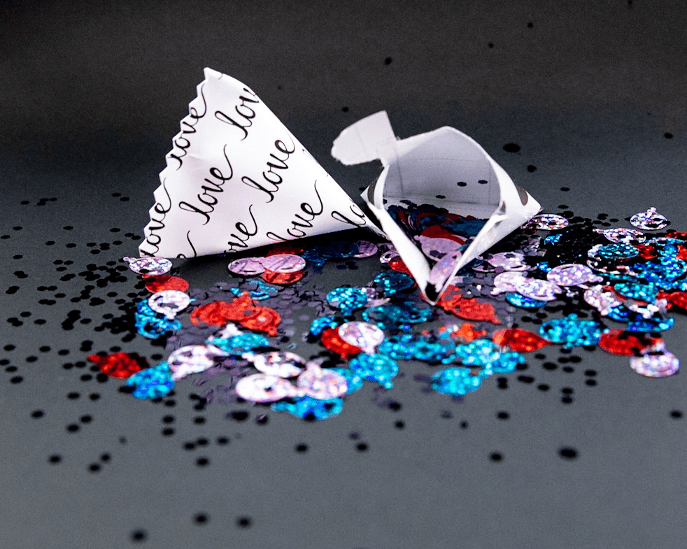All favors are made from patterned paper based on your color choice and party theme. If you prefer a solid color favor, mention it in the additional information section of your order.